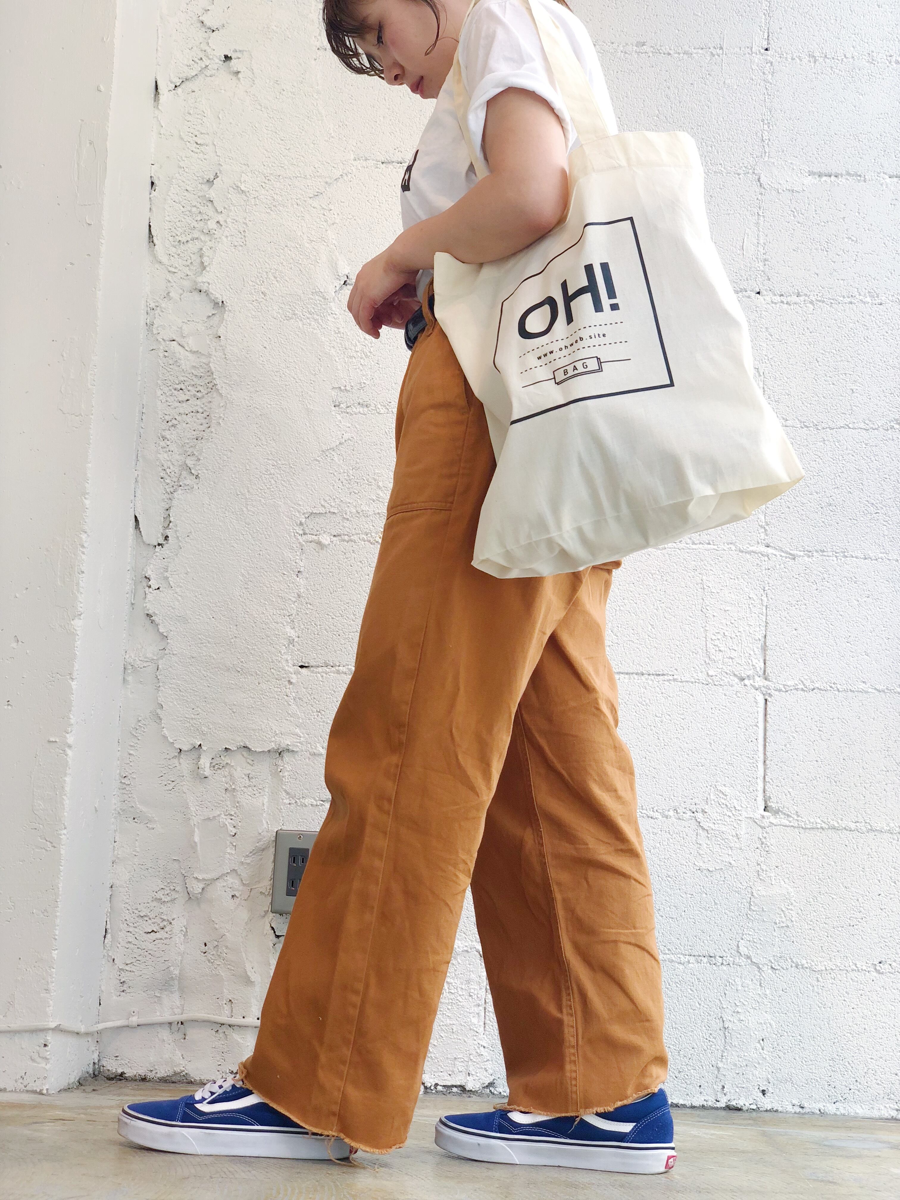 少し長めに作られた持ち手は、ビッグTEEなどアームホールにゆとりのあるトップス着用時も肩にかけやすく、3ozとちょうどいい薄さも◎